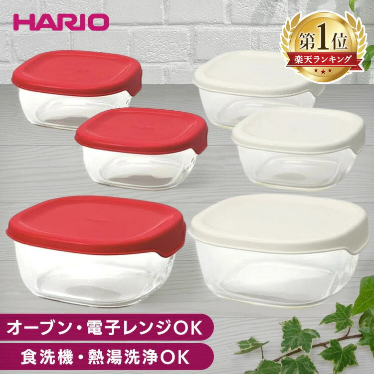 | ★最安値挑戦★\食洗機・電子レンジ・オーブン使用可能/ HARIO 保存容器 ガラス 耐熱ガラス 3個セット 食洗機Ok 熱湯洗浄OK 電子レンジOK オーブンOK 耐熱ガラス製 耐熱ガラス 調理 保存容器 製菓 オーブン調理 HARIO オフホワイト レッド ハリオ KST-2012-OW